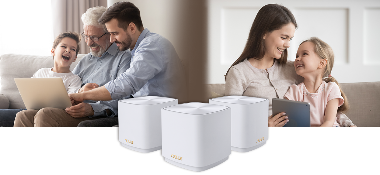 The ZenWiFi AX Mini system consists of one ASUS AX1800 WiFi 6 router and two extending node, featuring unique technologies that give you superfast, reliable and secure WiFi connections — inside or outside your home!