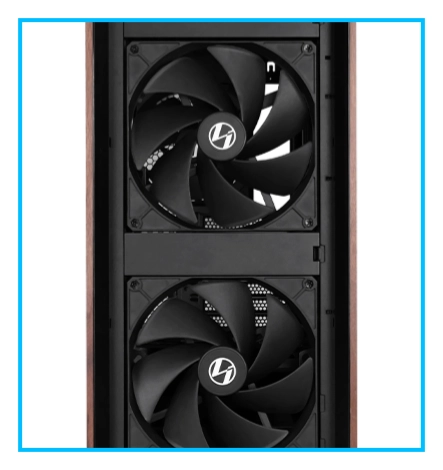 The LANCOOL 217 uses a tool-less fan mounting system with rubber pads on the front and bottom fans, allowing users to easily shift between CPU-focused and GPU-focused cooling modes.