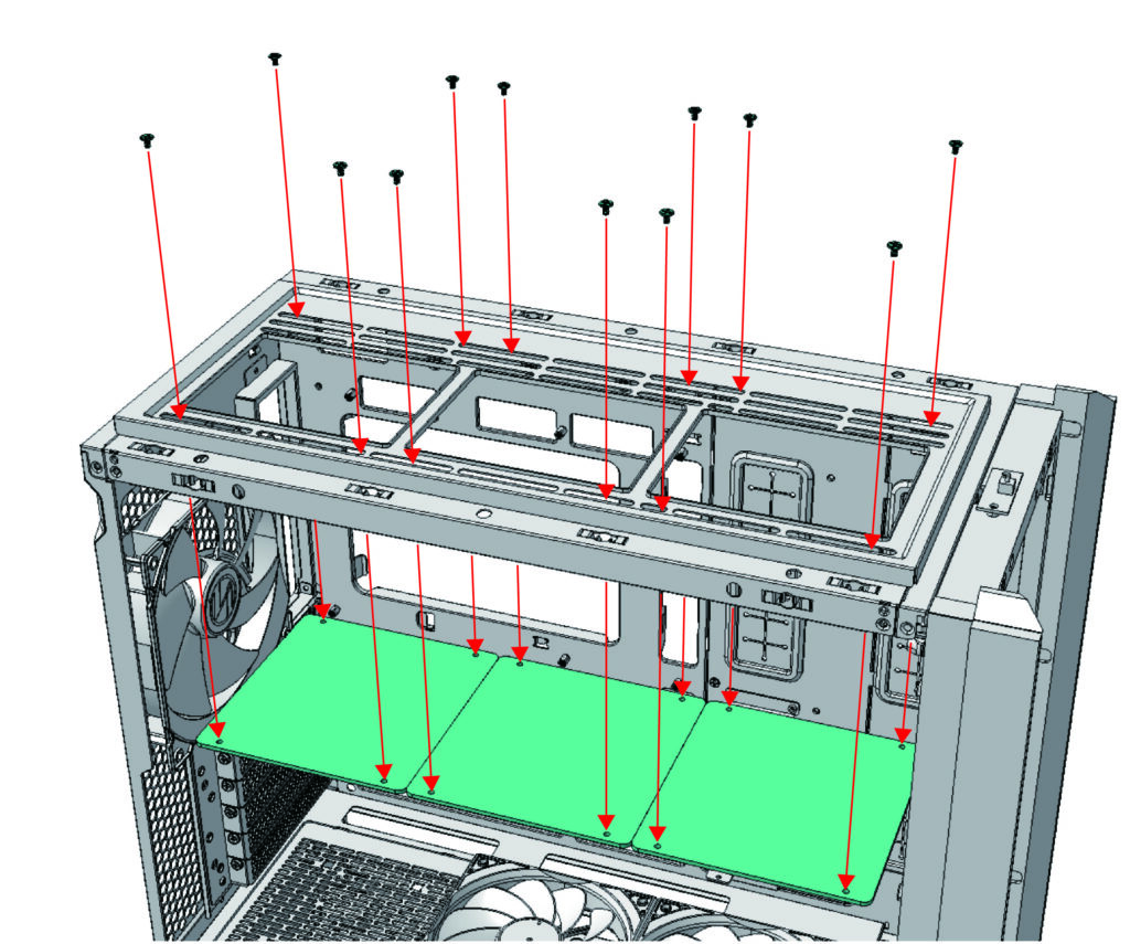 The top radiator bracket can be fully removed from the chassis, allowing users to install hardware more conveniently. When removing the bracket, the left-side frame bar is removed along with it, creating more available space for installation.
