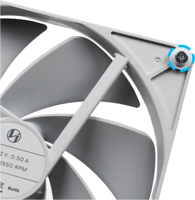 All fans come with rubber anti-vibration mounts combined with low-noise optimized design, keeping operation noise levels as low as 33.2 dBA for a quiet and comfortable environment.