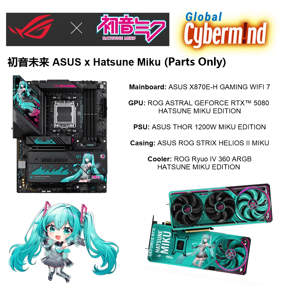 ROG continues its collaboration with virtual pop star Hatsune Miku with a complete gaming system centered around ROG's sci-fi aesthetics and Miku's signature blue-green, pink-color scheme. The collection combines Hatsune Miku’s signature style with superior ROG performance, premium quality, and versatile functionality for competitive gameplay or daily tasks.