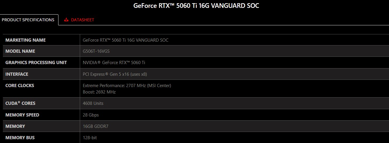 GeForce RTX™ 5060 Ti 16G VANGUARD SOC