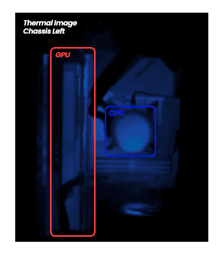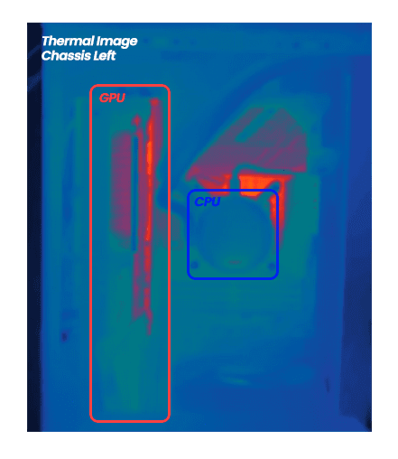 Thermal images were taken during thermal testing. Thanks to two CT140 PC Cooling Fans pre-installed, we were able to ensure that The Tower 300 Peach Fuzz comes with massive airflow, which guarantees amazing cooling performance and a low interior temperature while using the most upscale components.